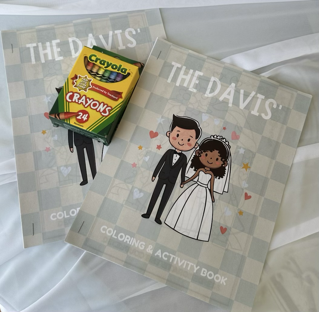 We specialize in one-of-a-kind custom coloring books and activity sheets that bring joy and creativity to your event. Whether it’s a wedding, birthday party, or milestone celebration, our keepsakes are made to match your theme, tell your story, and keep little hands busy, and grown-up hearts smiling.